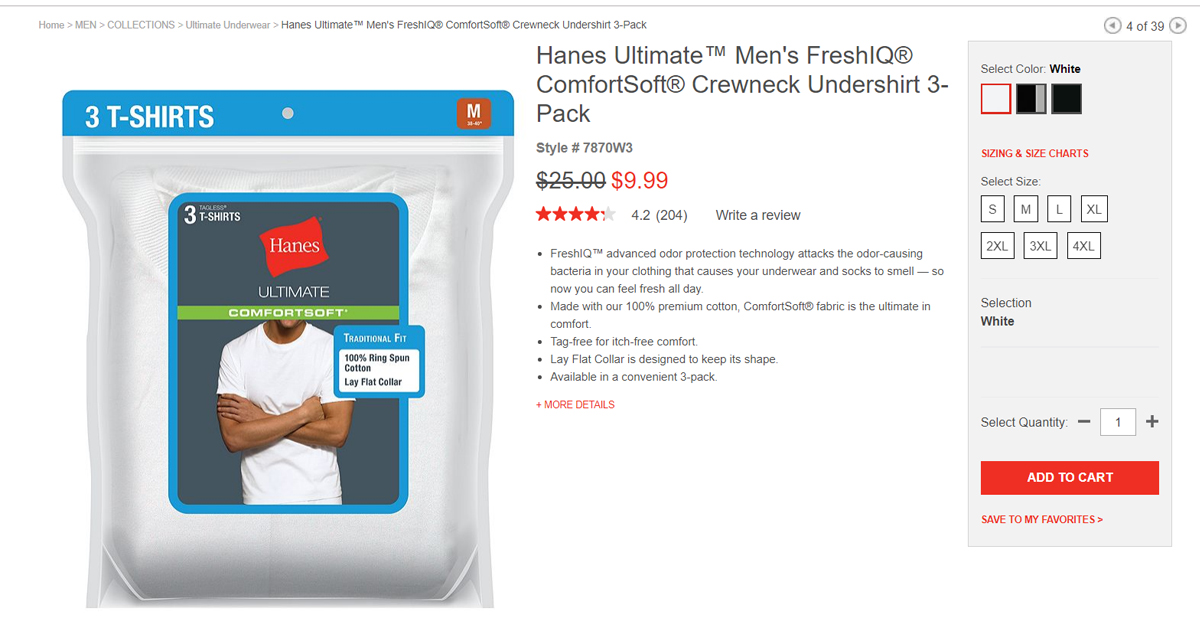內衣名牌 Hanes $9.99 三件!