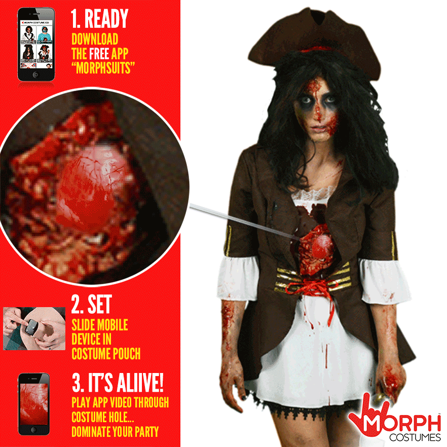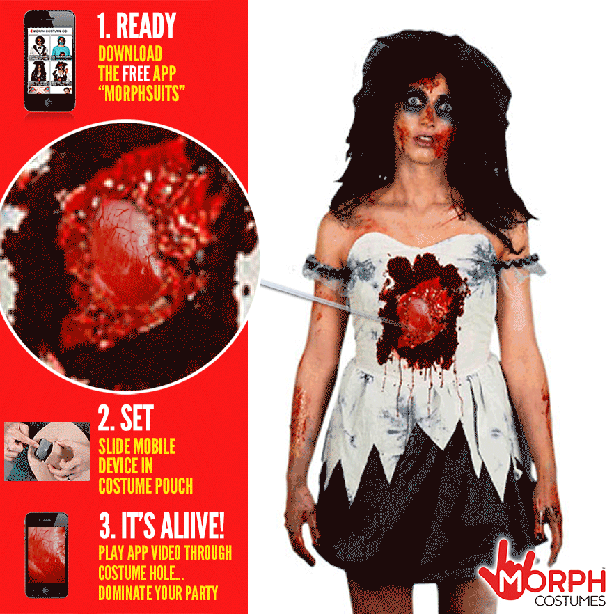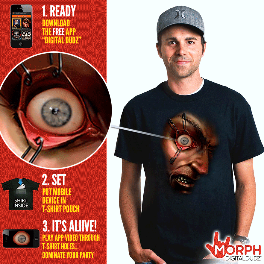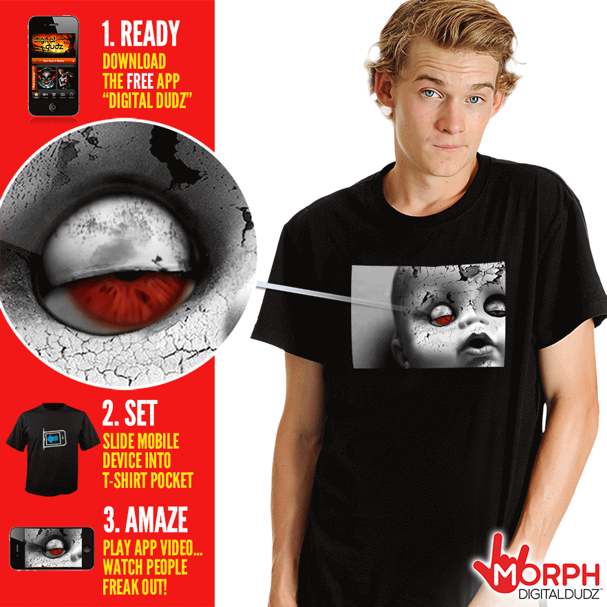 Morphsuits 正在售賣一系列可以放入手機或平板的 T 恤或面具,只要將安裝了「Digital Dudz」 iPhone 或 Android App 的手機放入,就可以令你今個萬聖節的裝扮更有特色。